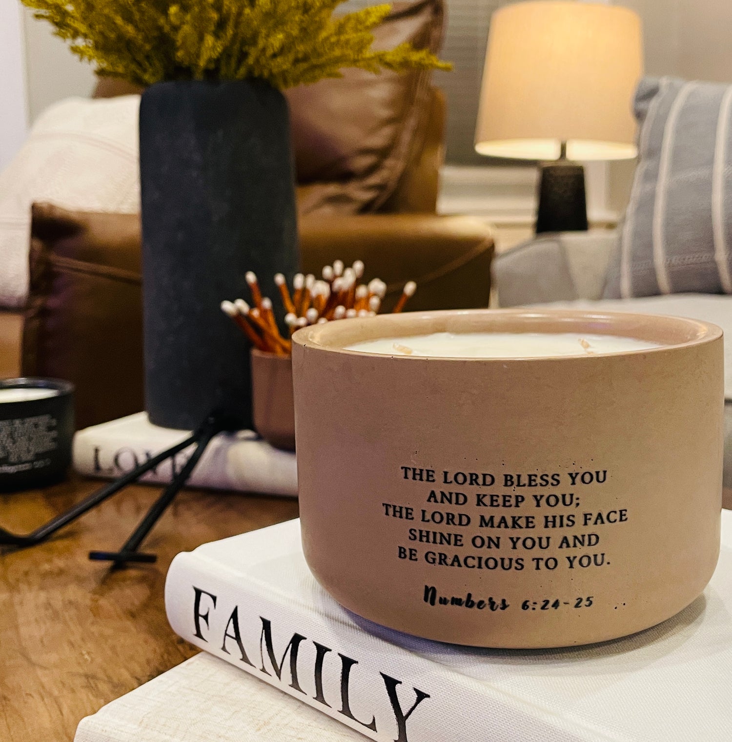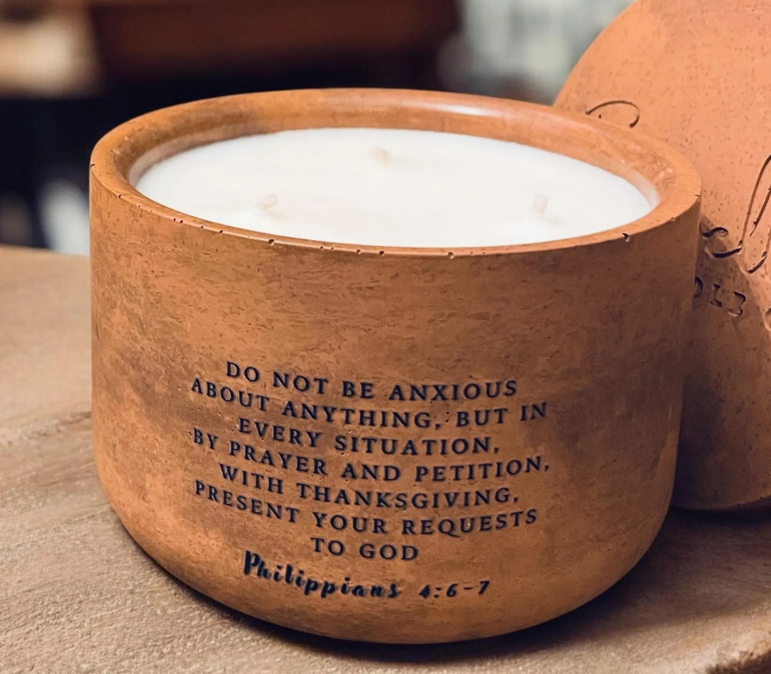 fragrance in the heart of your home. We are a family of faith residing in Dedham, Massachusetts, who have always cherished the warmth and ambiance that candles bring. For us, a candle isn't just about filling a room with a delightful scent—it's about creating a space filled with inspiration, peace, and the comforting presence of faith. Our journey began with a simple desire: to surround our home with uplifting messages rooted in Scripture, coupled with the pure, non-toxic glow of natural candles. We searched for products that embodied both our love for quality candles and our devotion to faith but found the options lacking. This realization sparked a calling within us to create something new.