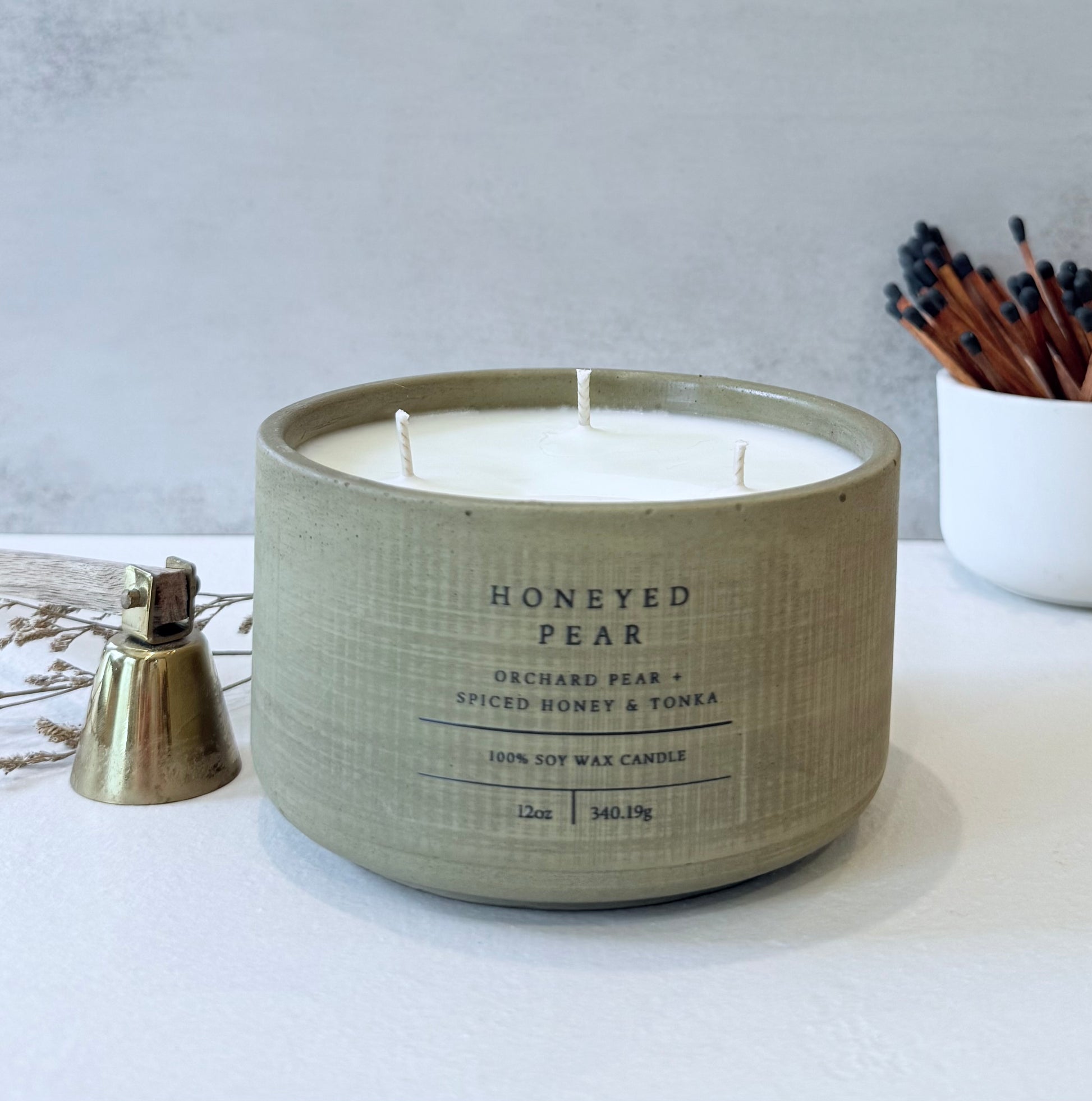 Immerse yourself in the gentle sweetness of the season with our 100% Soy Candle, thoughtfully hand-poured into a bespoke concrete vessel. This candle blends the crisp, juicy aroma of orchard pear with the rich warmth of spiced honey and tonka, creating a fragrance that inspires a grateful heart and fills your home with comforting joy.