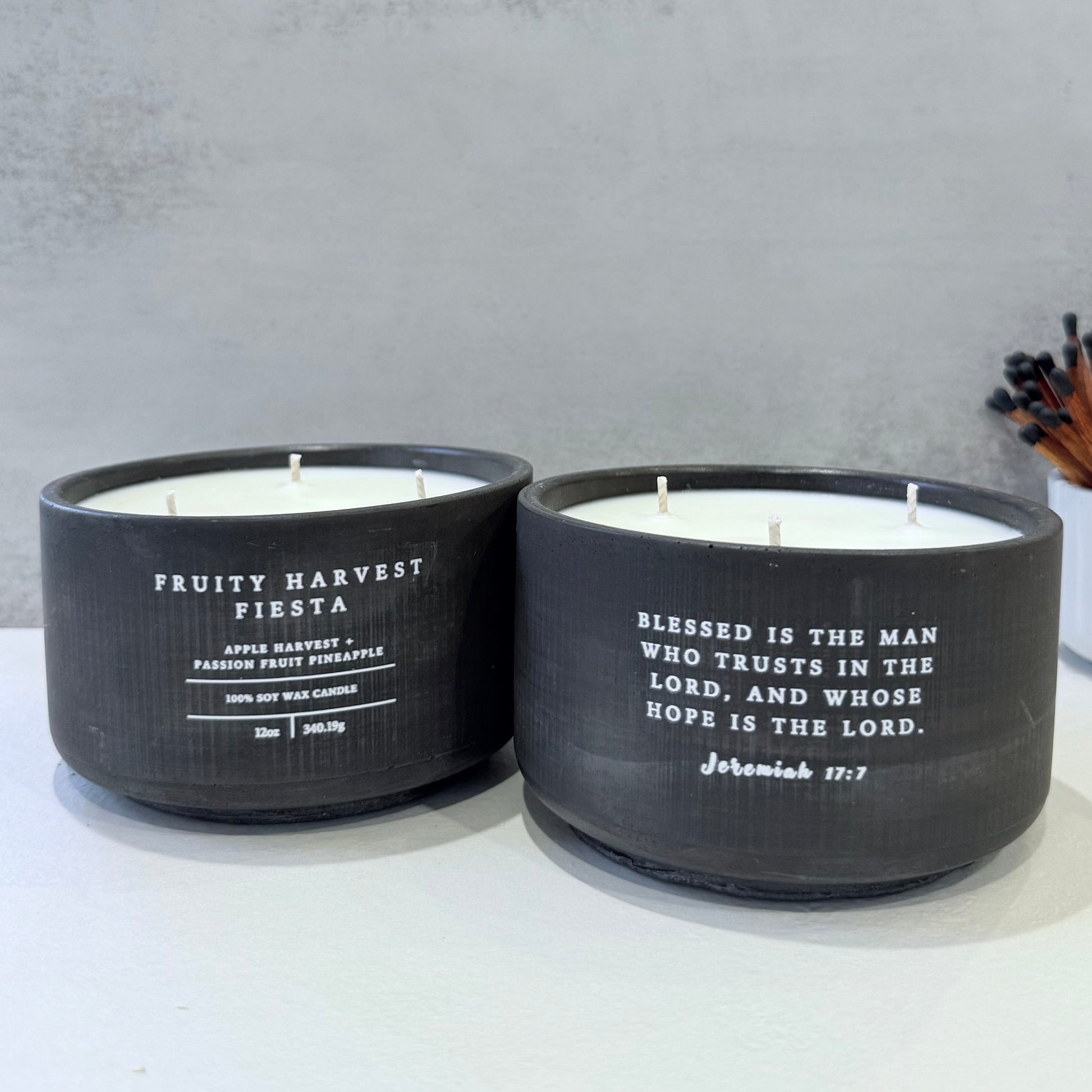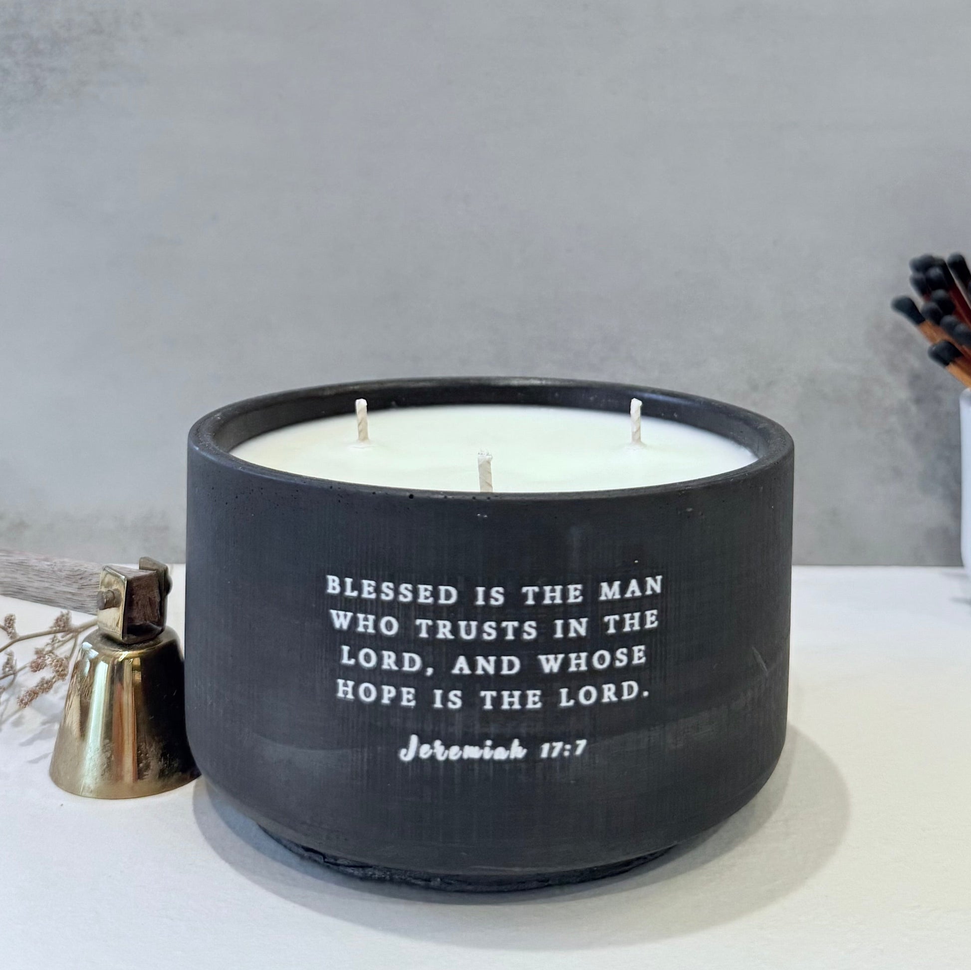 Each candle is housed in a handcrafted concrete vessel, uniquely designed with non-toxic pigments for natural beauty and eco-conscious elegance. Paired with Jeremiah 17:7, it serves as a gentle reminder to trust in the Lord and find joy in His unwavering presence.